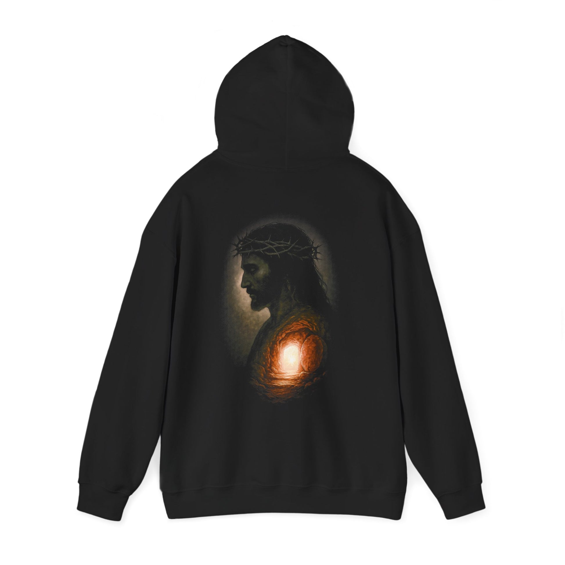 This unisex heavy blend hoodie features a design of the empty tomb, symbolizing Jesus's sacrifice. It gives a comforting and meaningful vibe, making it perfect for Christian believers and those celebrating Easter.