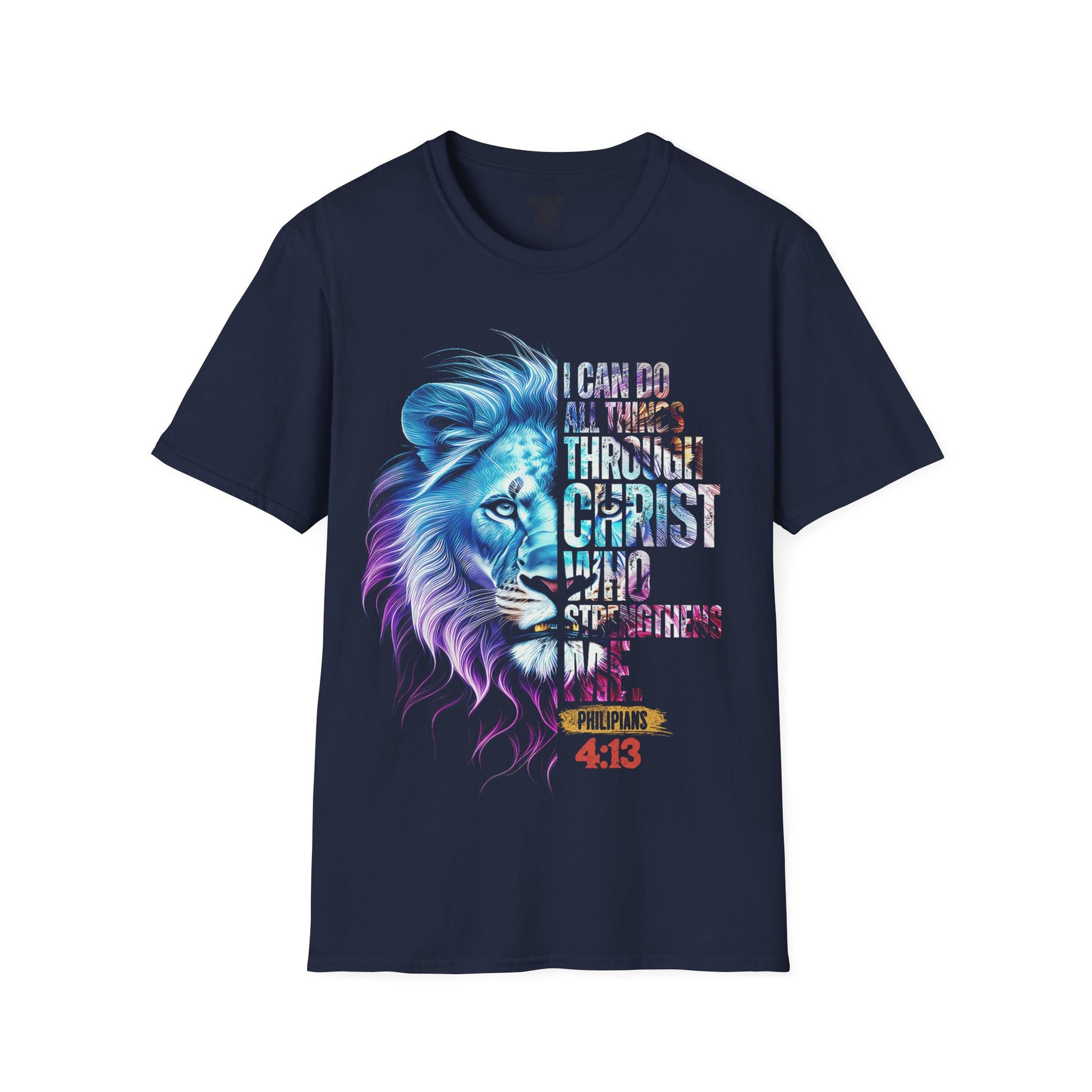 Inspirational Lion Graphic Tee - Unisex Softstyle T-Shirt for Faith & Strength, Christian Apparel, Motivational Gift, Everyday Wear