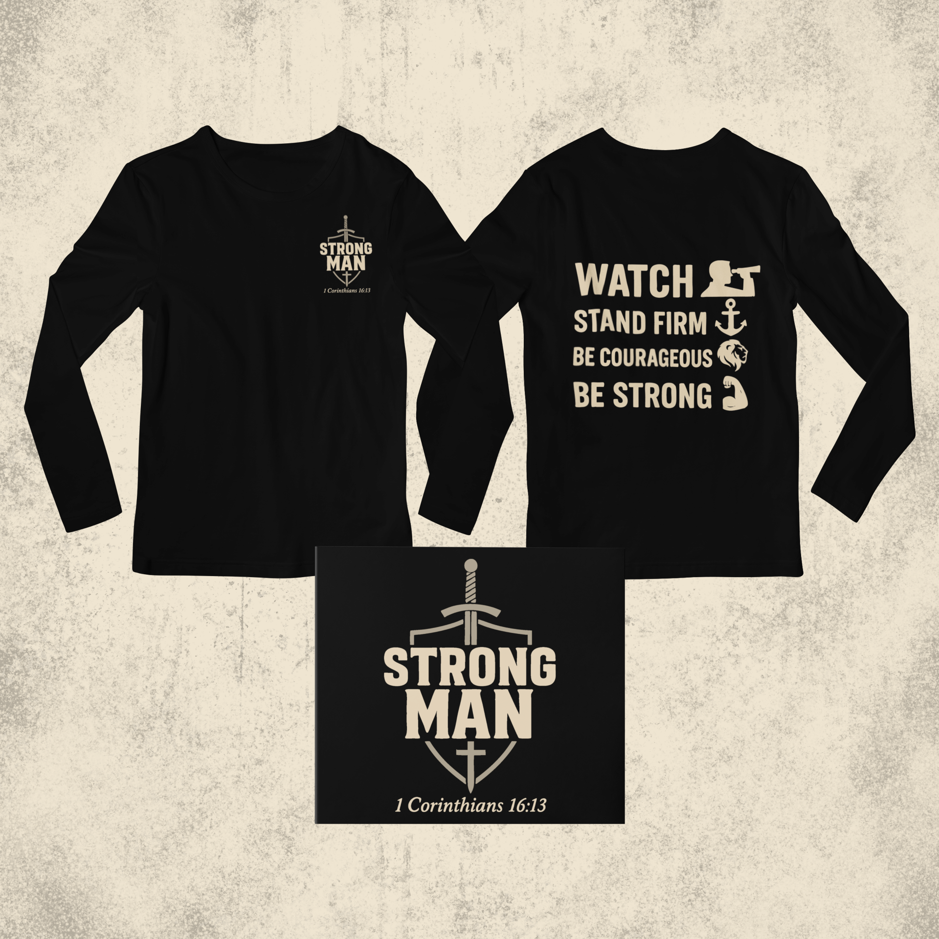 Strong Man Long Sleeve T-Shirt | Motivational Tee, Gift for Him, Courage, Strength, Fitness Apparel, Inspirational Wear